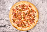 Loaded with meatballs, crumbled sausage, pepperoni, bacon, tomato sauce, and mozzarella for a meat lover’s dream.